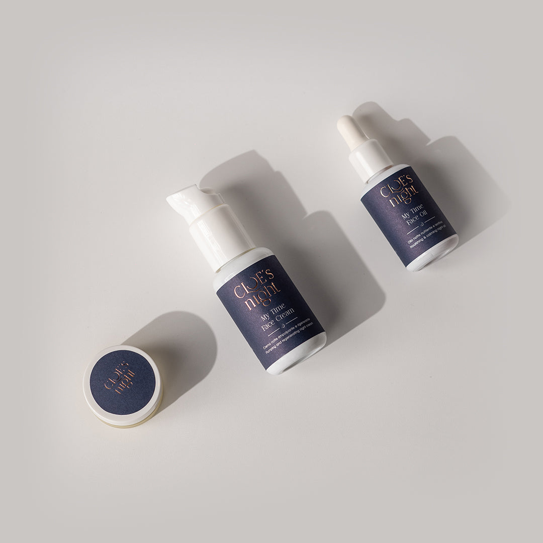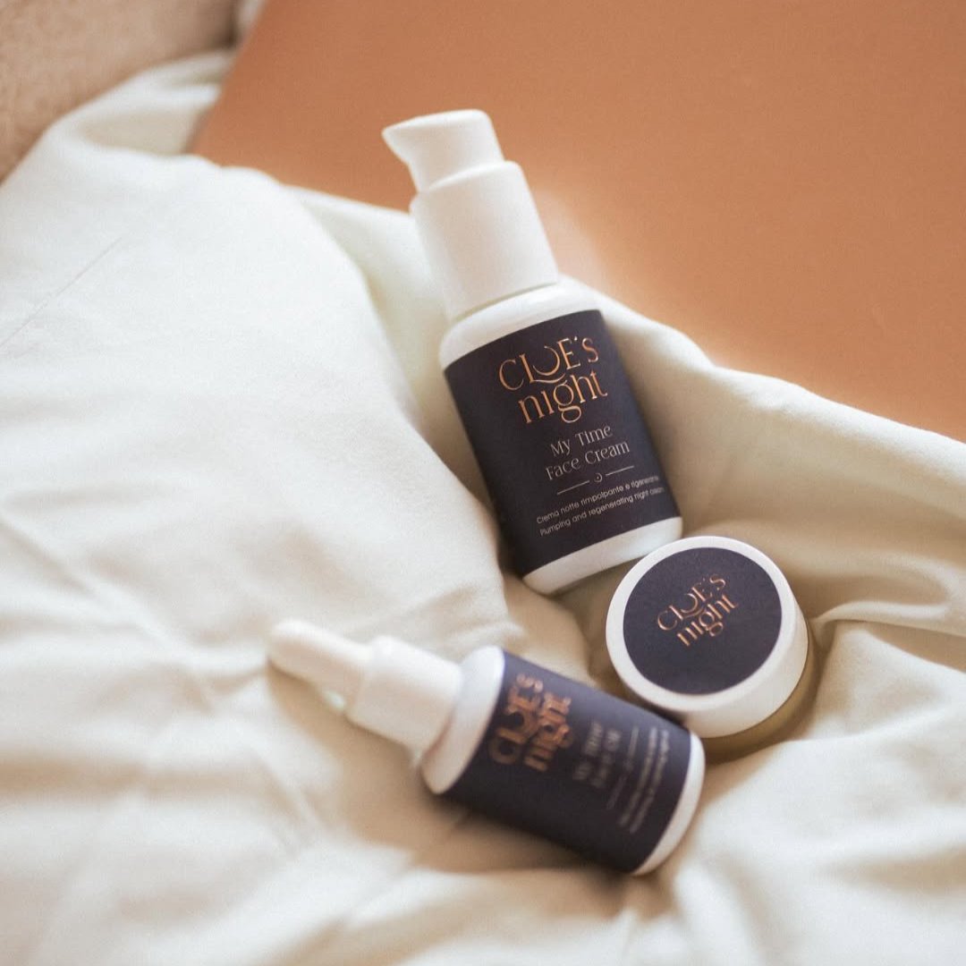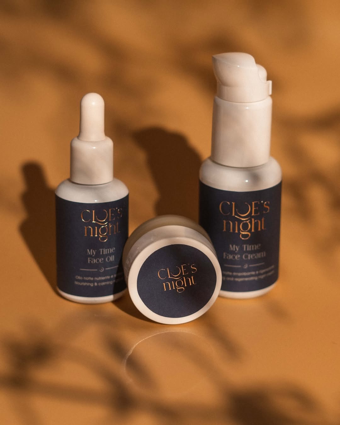 La crema e l’olio My Time di Cloe's Night sono più ricche e dense rispetto a quelle diurne, fornendo un'idratazione notevole e prolungata. Durante la notte, la pelle può beneficiare di questa maggiore idratazione senza preoccuparsi dell'aspetto lucido o oleoso, che in ogni caso non noterete al mattino.